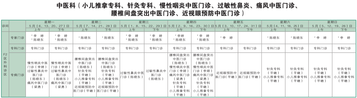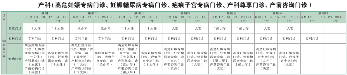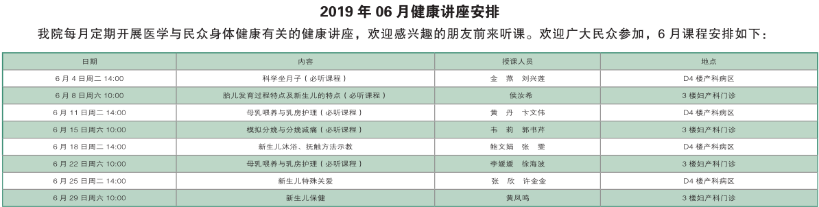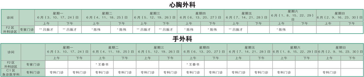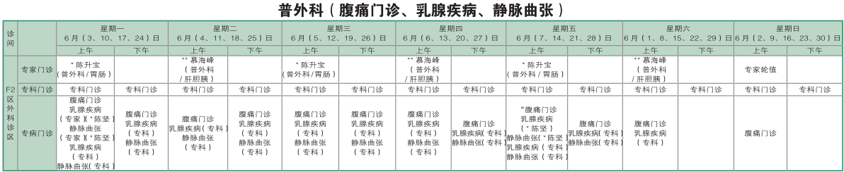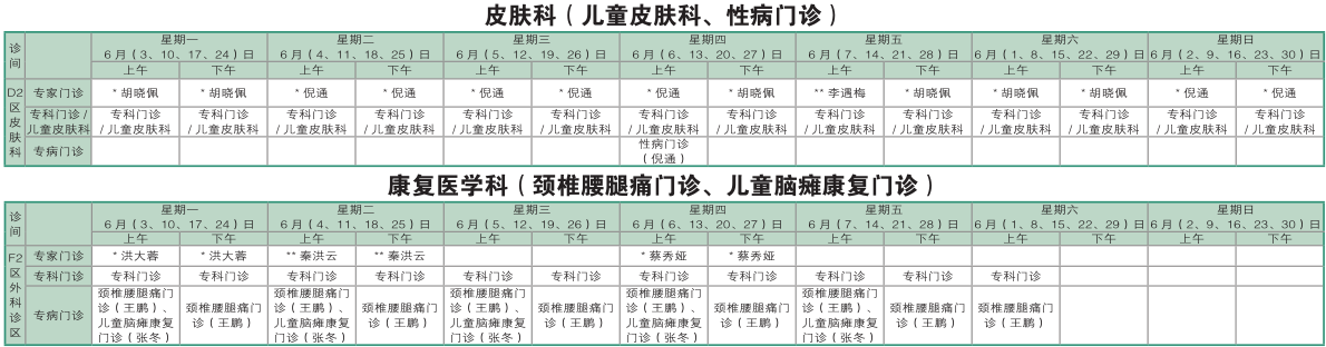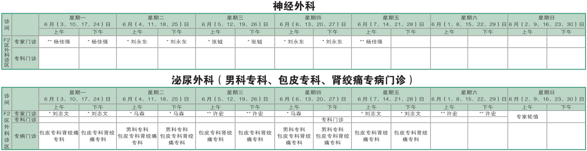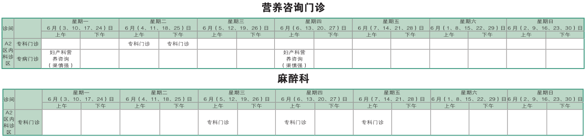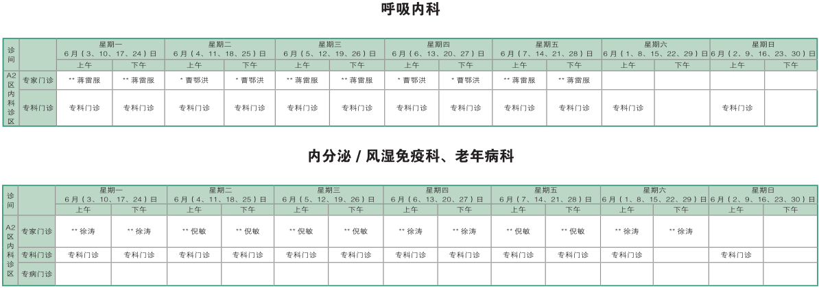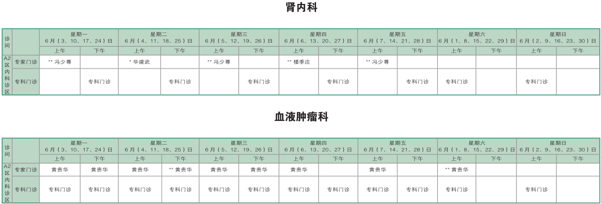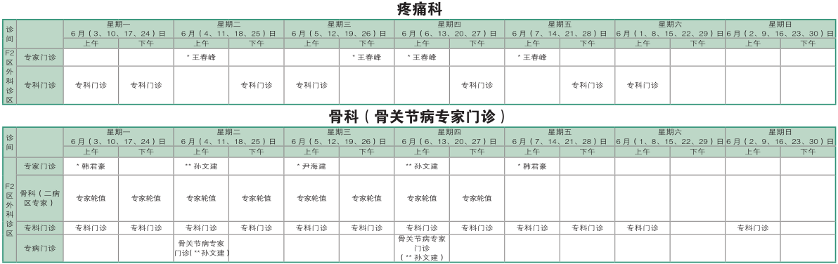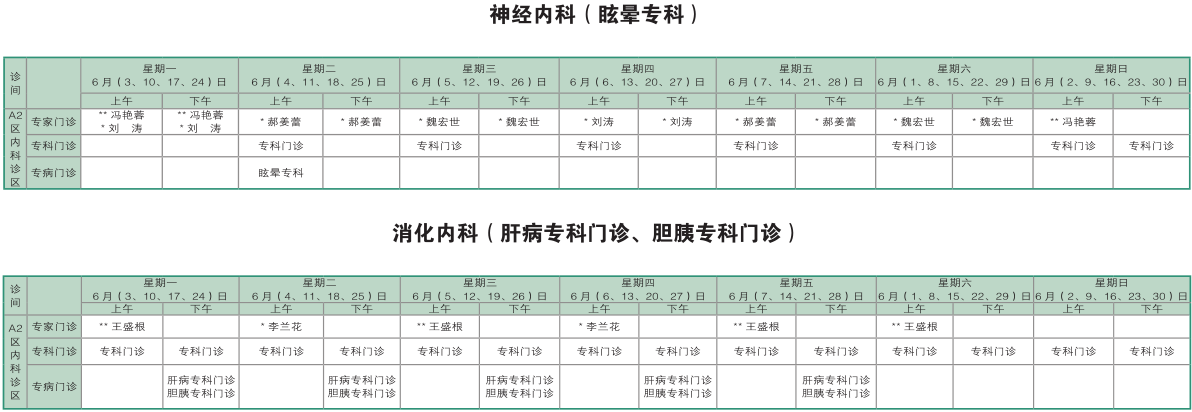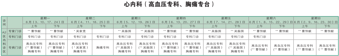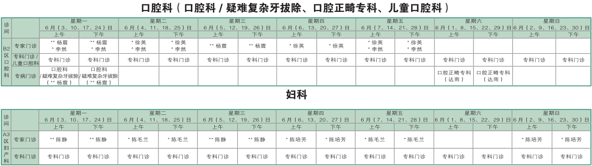 南京同仁医院2019年6月门诊时间排班表