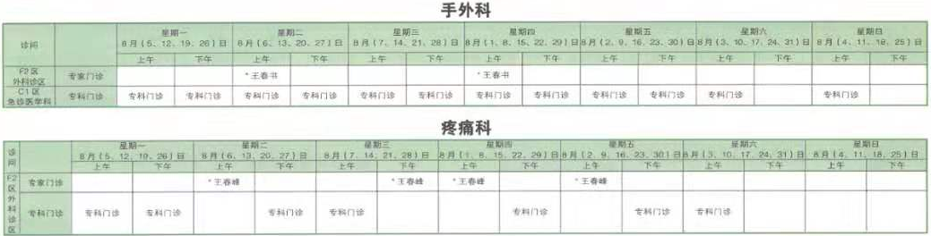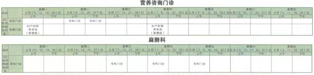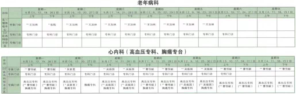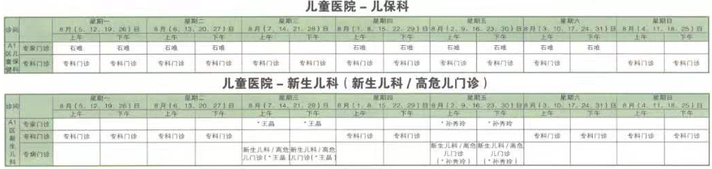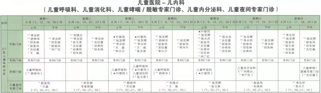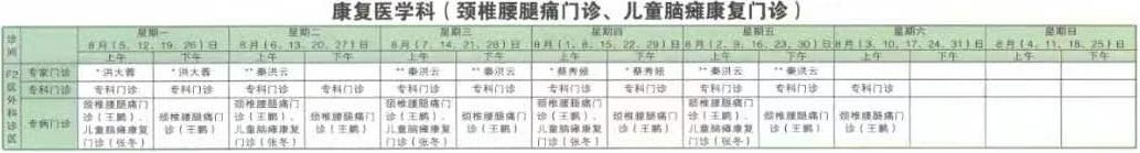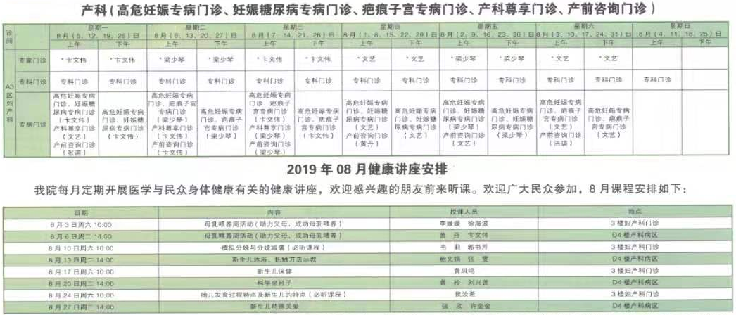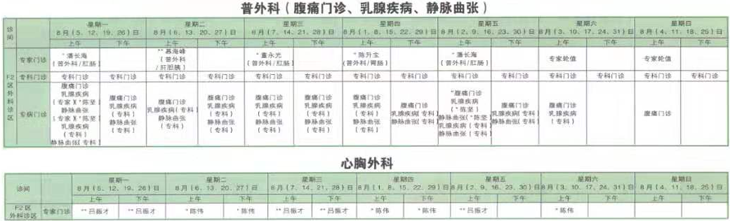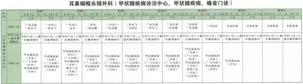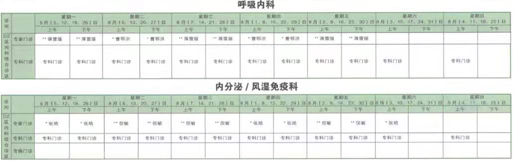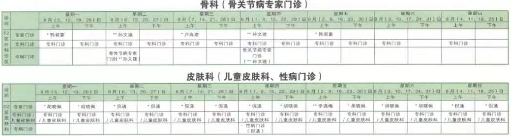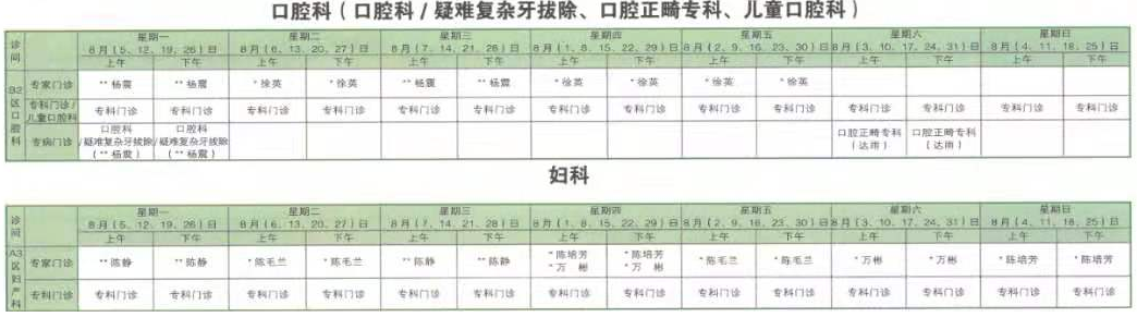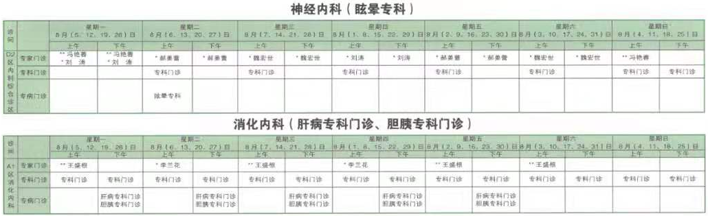 南京同仁医院2019年8月门诊时间排班表